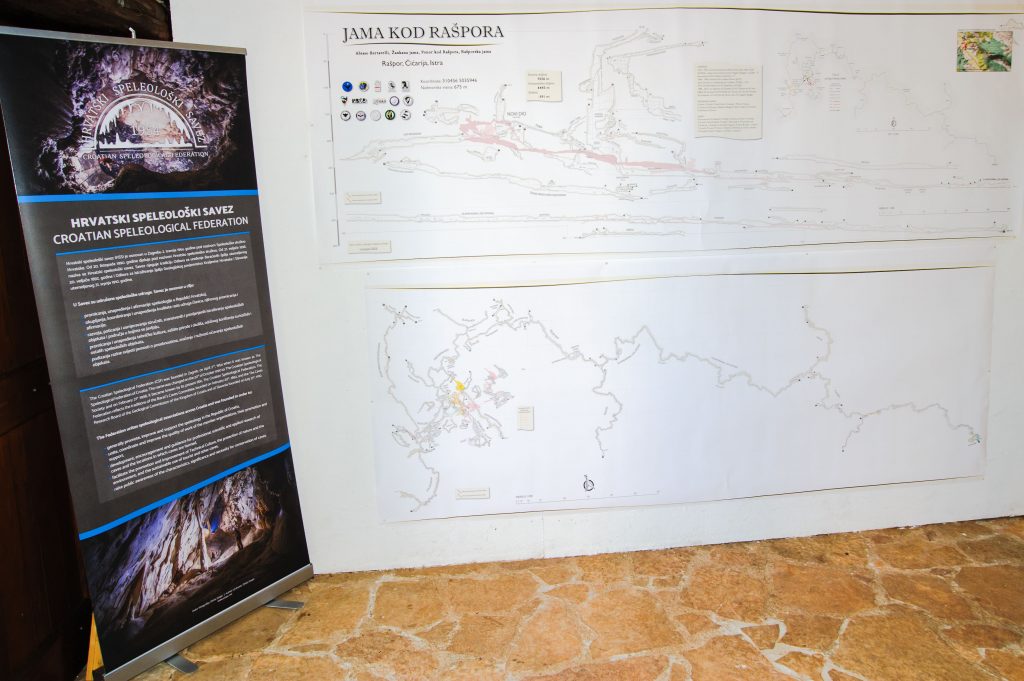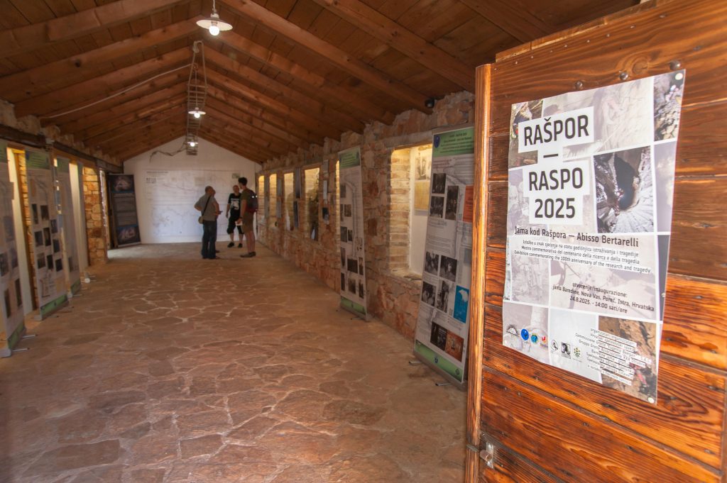 Iza autohtonih kamenih zidova prostora Speleogalerije kod Jame Baredine otvorena je tršćanska trojezična izložba banera koja kroz bogatstvo dokumenata, fotografija, ilustracija, nacrta i mnoštvo tekstova daje širi kontekst njihovih prvih godina istraživanja Jame. Speleološki savez je postavio izložbu fotografija istraživanja rašpora u posljednjih 20 godina. Izložen je impozantan aktualni nacrt hrvatskih istraživača koji se protezao preko cijelog zida. Domaćin Legović izložio je povijesnu speleološku opremu, pa čak i neke dijelove ostataka speleološke opreme prvih istraživača Rašpora. Na izložbi je prezentirana i netom pronađena speleološka kaciga iz prezentirane Jame, također povijesni raritet. Uz navedeno, Lovel Kukuljan iz SU Estavela je održao bogato ali sažeto predavanje o istraživanjima te najavio knjigu o 100 godišnjici istraživanja Rašpora koje je on glavni autor. Nakon prezentacije mnoštvo je uz proučavanje bogatstva izloženih materijala i nacrta listalo besplatne primjerke domaće speleološke literature, razgovaralo i družilo se uz izvrsnu domaćinovu tradicionalnu istarsku maneštru od bobići. Tršćanski su speleolozi istovremeno prezentirali svoje autohtone gastronomske proizvode; Prosciutto cotto i tipične deserte, a stol do je nudio izvrsna istarska i talijanska vina, što je atmosferu prijateljstva i dijeljenja učinilo još posebnijom. Na skupu su sudjelovali speleolozi iz Commissione Grotte E. Boegan, Asociazione XXX. Ottobre iz Trsta, SD Proteus, SU Pula, SD Gračišće, SD Underground, SU Spelunka, SU Estavela, SK Ursus spelaeus, SD Karlovac, HBSD, Baštinik, SO HPD Željezničar i SO Velebit iz Hrvatske.