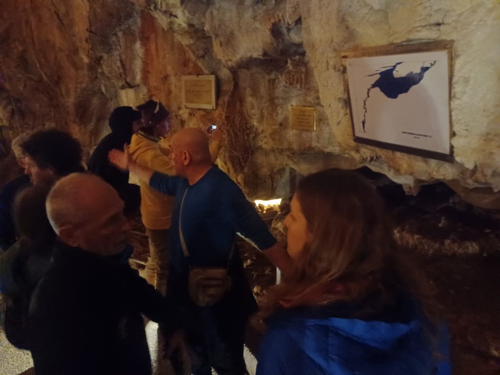 Zahvaljujemo se na pravom prijateljskom gostoprimstvu, jer odmah po dolasku počašćeni smo od tršćanskih speleologa kavom, hranom i pićem, nakon toga organiziran je besplatan obilazak špilje za sve hrvatske suradnike i goste, pa zajedničko otvaranje izložbe o jami koja je jednako važna tršćanskoj, slovenskoj i hrvatskoj speleološkoj zajednici.